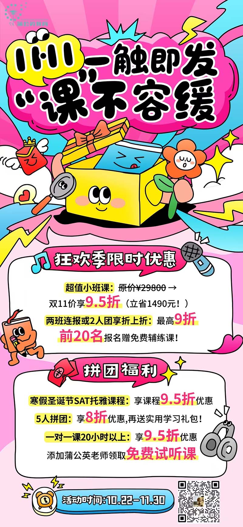 教师是从各个方面唤醒和启发孩子的优势和潜能,蒲公英教育秉承这个理念致力于为国内的中学生海外学习提供所需的标准化学术水平考试和语言能力考试培训,包括SAT/ 托福/小托福/雅思等。