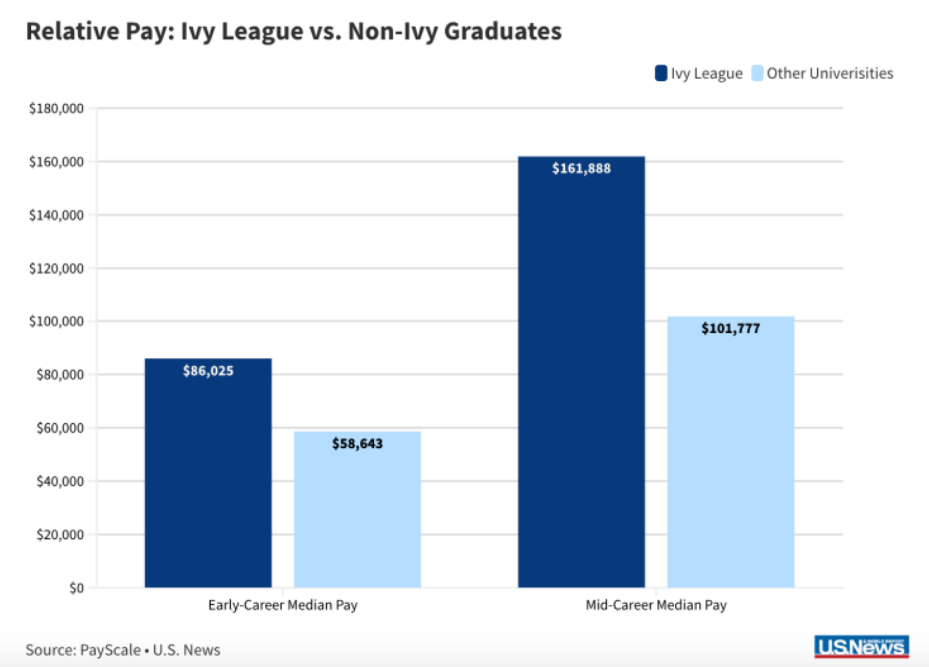 而藤校对中产的价值格外突出:进入 Ivy-Plus 大学后,他们的高收入比例、精英院校深造率等指标提升幅度更大,藤校毕业生职业早期中位薪资 86,025 美元,是普通高校生的 1.5 倍,职业中期薪资 161,888 美元,而其他大学毕业生只有101,777美元。差距进一步拉大,SAT高分正是敲开藤校大门的硬通货。