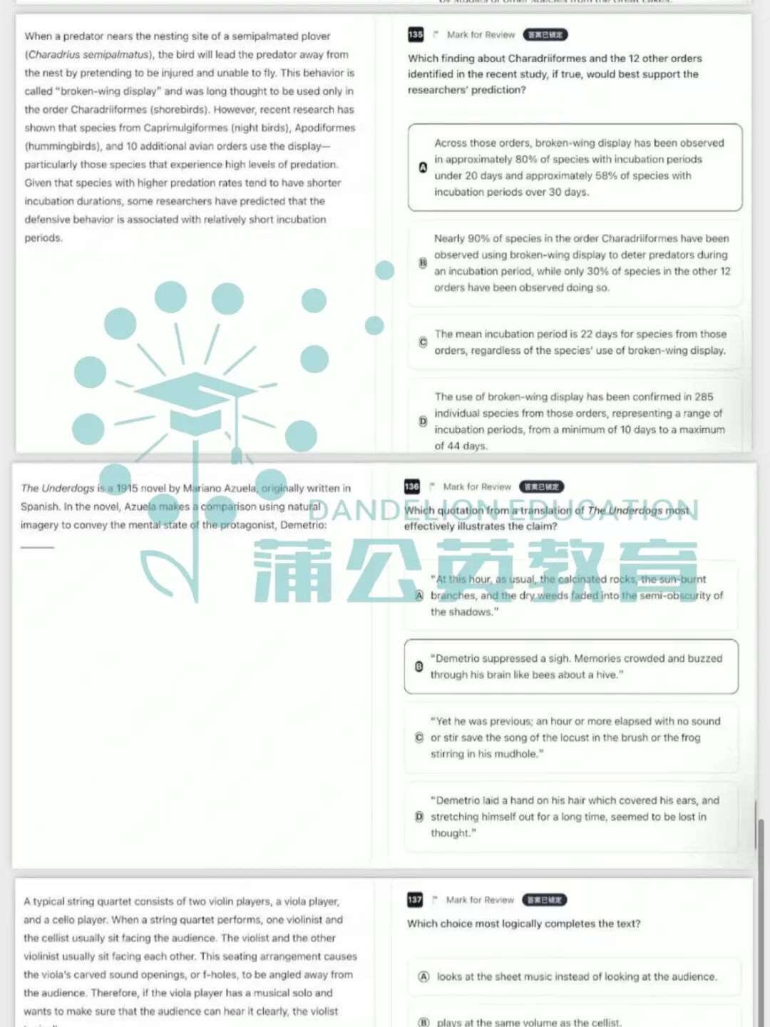 蒲公英教育马上整理出最新11月SAT考试真题