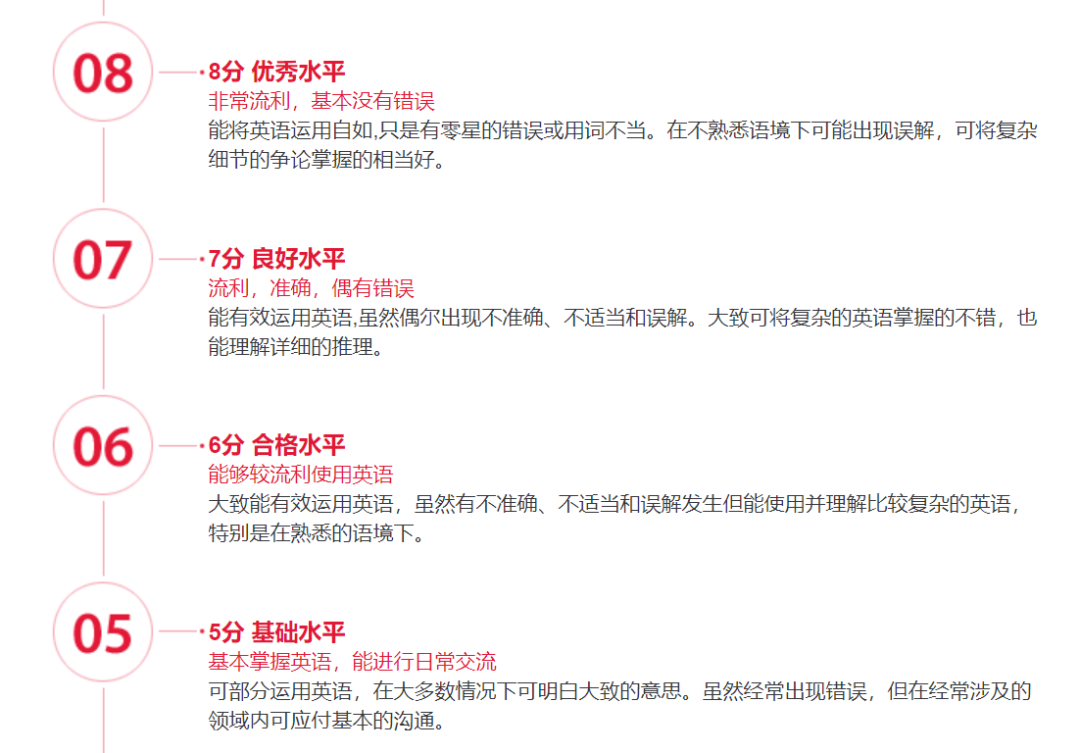 此外,若总分达到 7.5 分,基本能突破多数申请限制,全球高校大概率会向你敞开大门。能跻身这一分数段的学生,无疑已具备相当出色的英语能力。