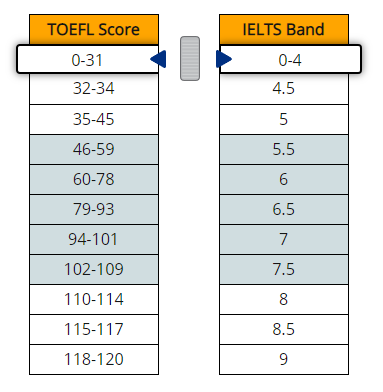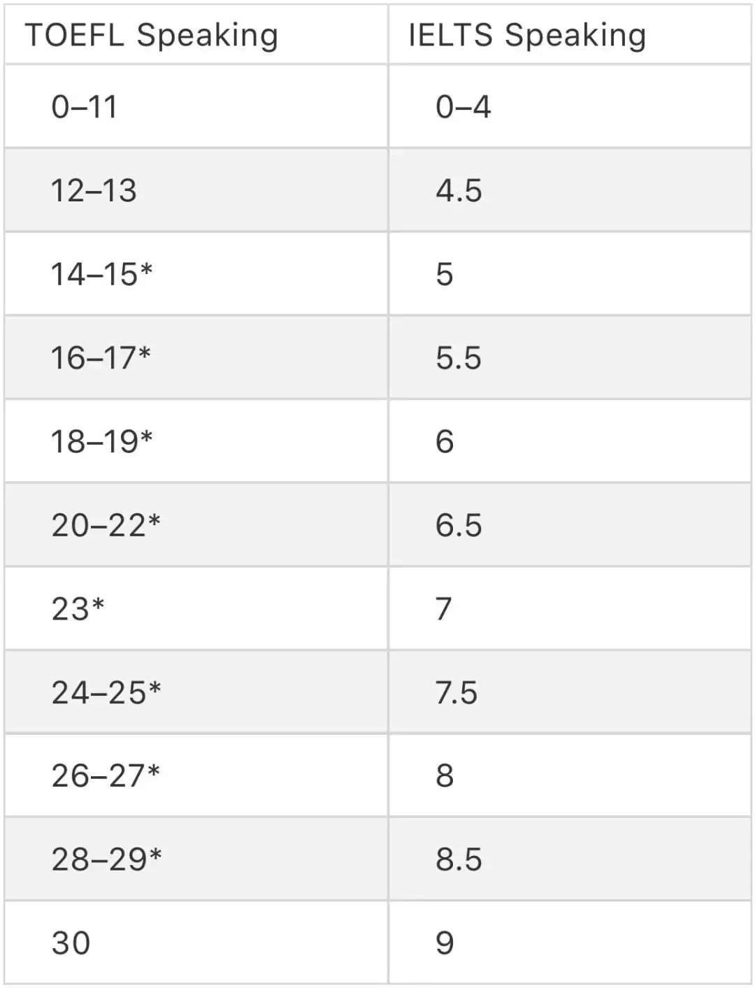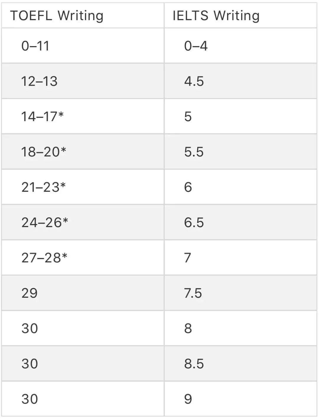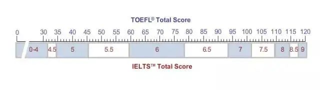 ETS 官网曾给出托福和雅思分数对比尺。如下: