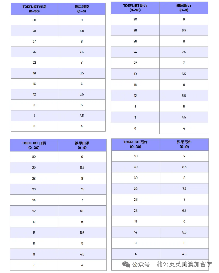 ↑ 雅思托福分数对照表 ↑