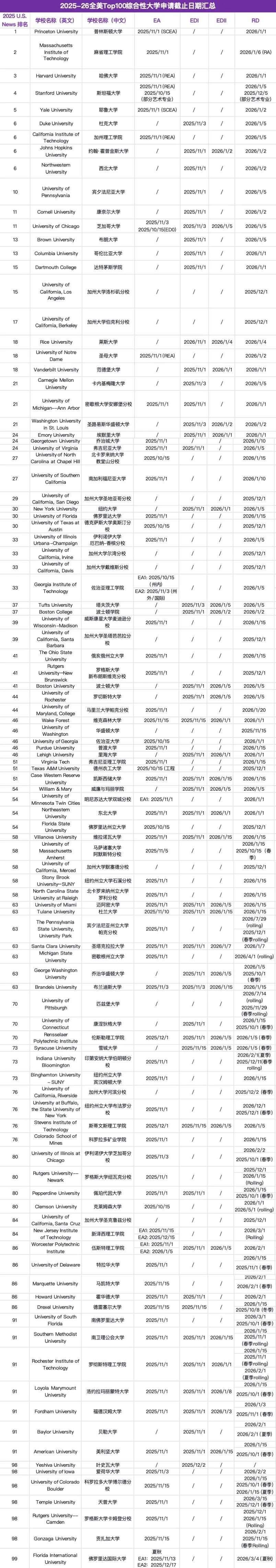 申请季时间轴来了!小编贴心整理26Fall美本大学申请截止时间汇总!同学和家长记得收藏转发,高效规划申请不慌不乱~