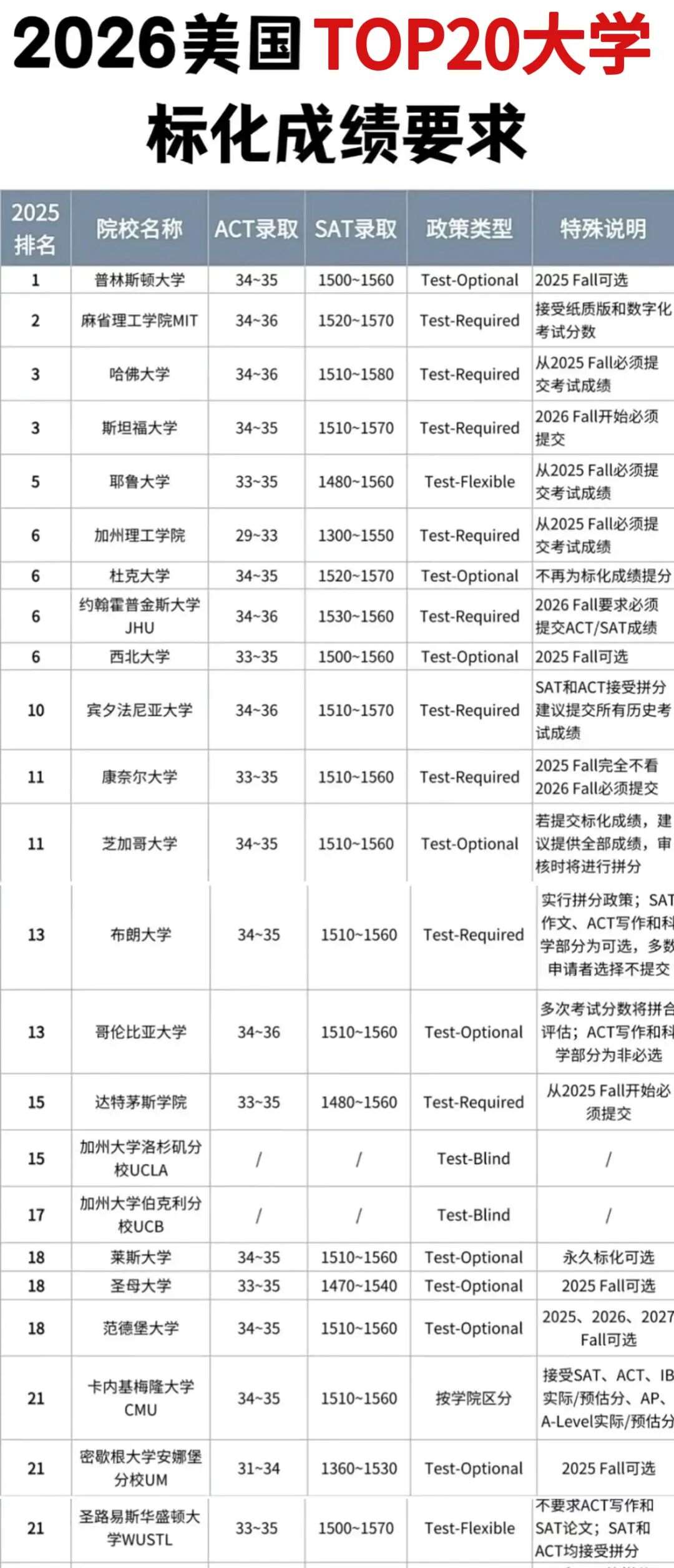 ✔️美国大学最新标化要求汇总