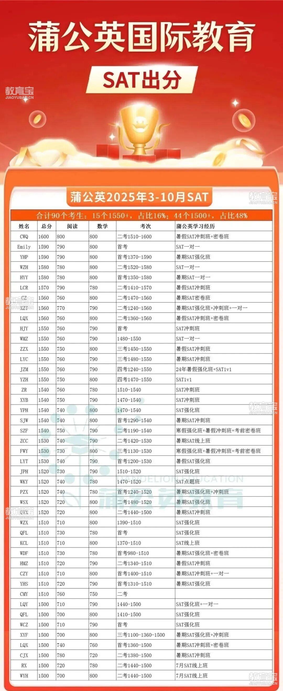 详细介绍课程之前,先来看看蒲公英SAT高分战绩!