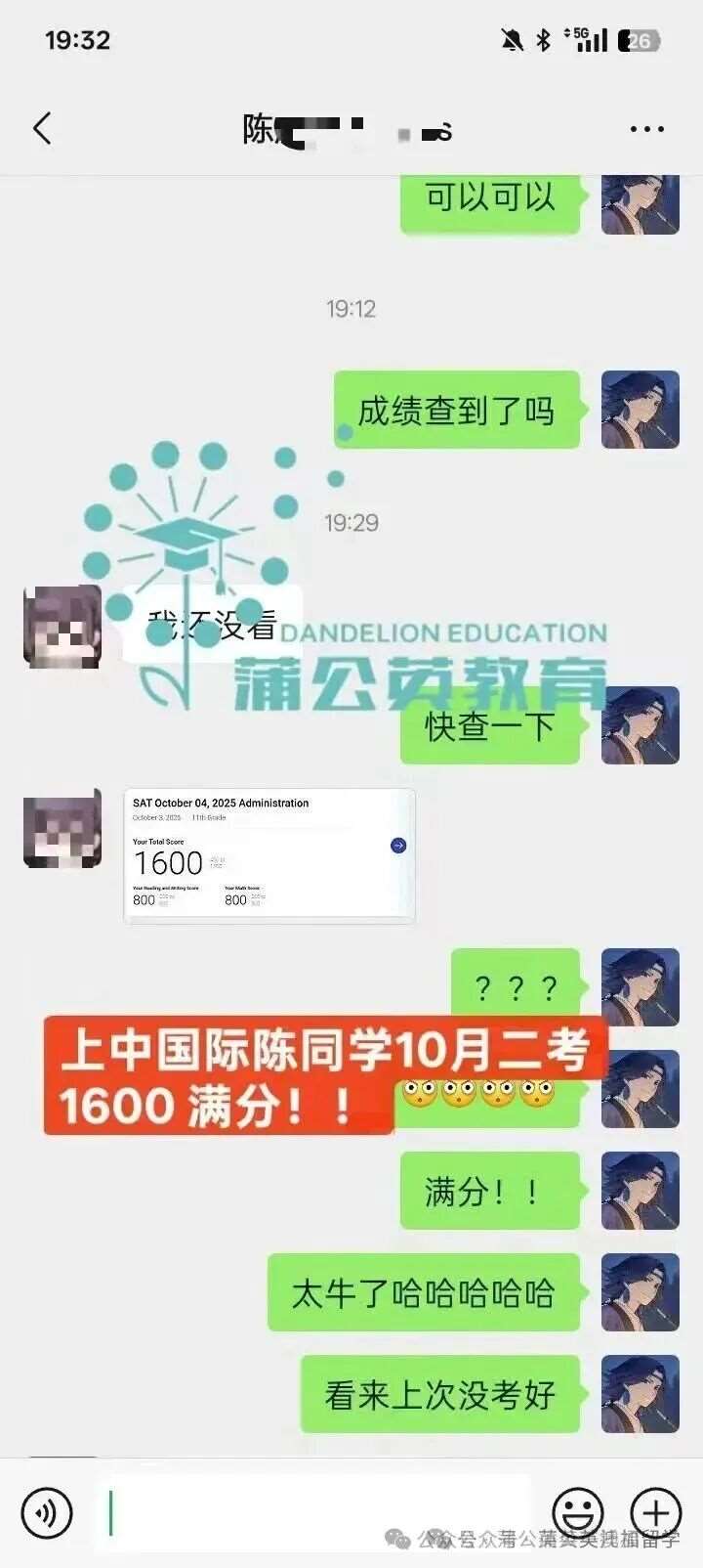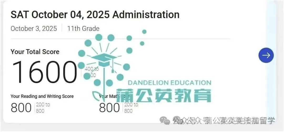 10.4蒲公英SAT出分【1600】满分!