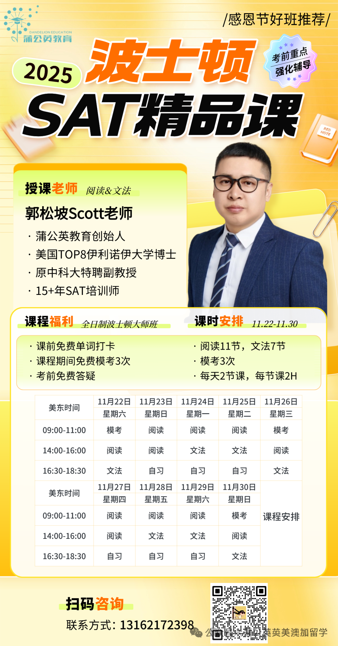 2025留美郭博士美国波士顿感恩节SAT集训【美高SAT国际课程】,资料领取/课程咨询请添加蒲公英教育Tansy老师,微信:pgytansy88
