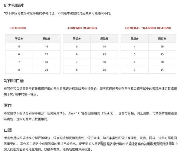 以下是对“2025年雅思评分标准对照表、计算方式和分数对应表”内容的解读:
