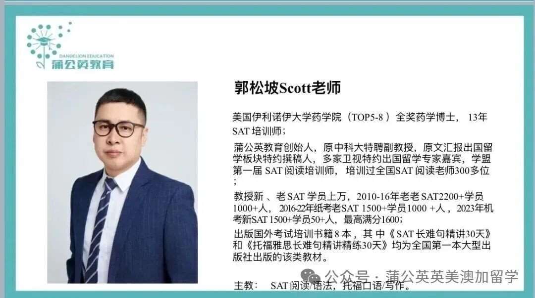 此外,上海蒲公英SAT寒假班(线下课程/线上课程)正在火爆招生中,在2025年的寒假,跟随业内SAT大神郭松坡博士科学高效的SAT课程,带你轻松冲刺SAT1500分+!