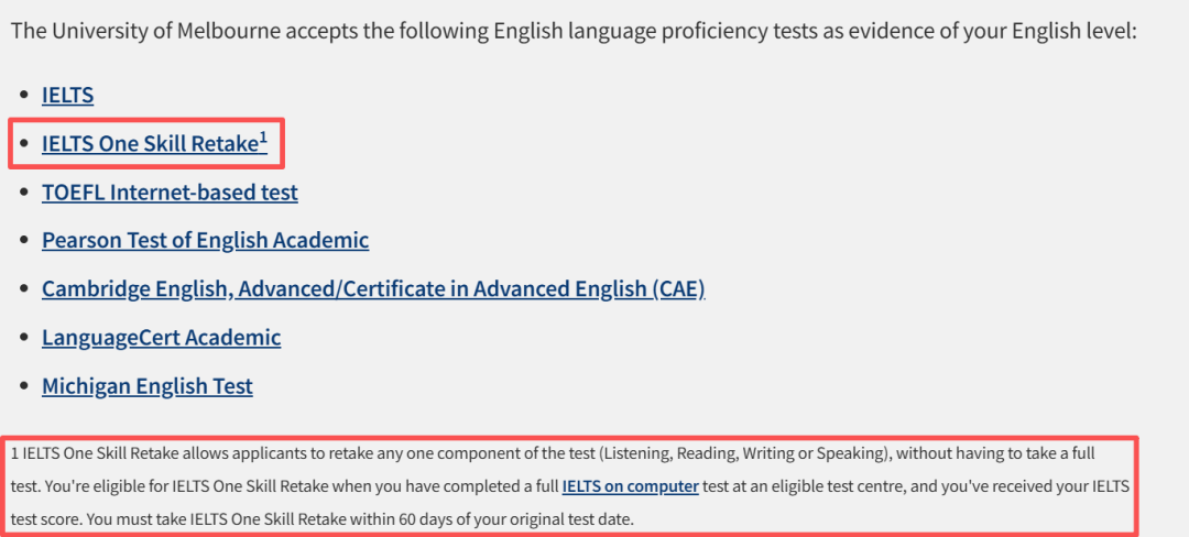 根据墨尔本大学官网最新信息,此次雅思单科重考政策并非“一刀切”,时间节点是重要分水岭,大家务必对号入座: