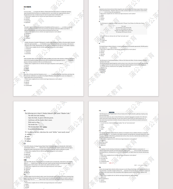 词汇积累不是“一次性任务”,建议大家拿到合集后,每天花部分时间刷题,做错的题目整理到错题本,结合语境反复记忆,就能明显感受到“词汇敏感度”的提升!SAT考试备考资料免费下载