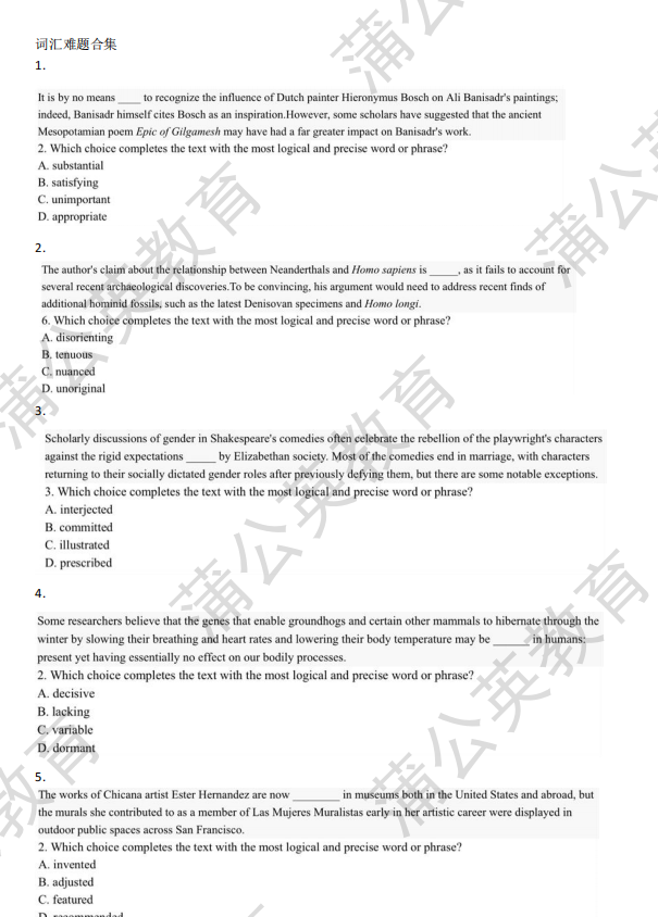 SAT词汇考察的核心是“语境应用能力”,很多同学背单词只记字面意思,却忽略了它在不同句式、不同中的特殊用法——这正是失分的重灾区。而这份难题合集,精准踩中了3大核心考点: