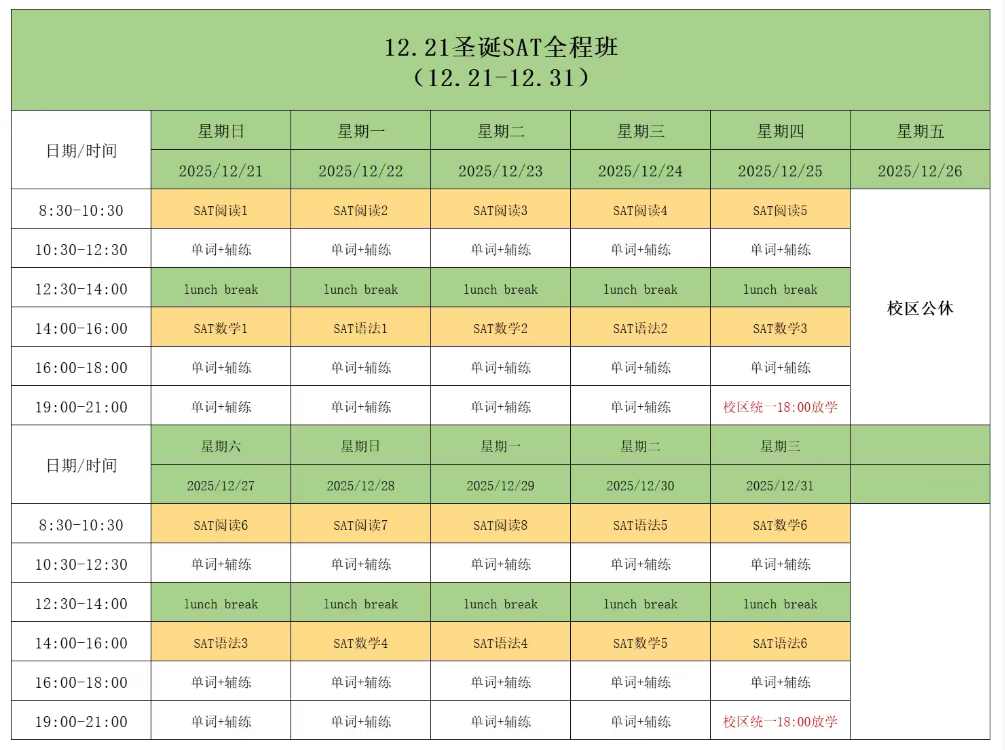 上海蒲公英教育SAT圣诞全程班,最后“1”个名额,火热招生中!