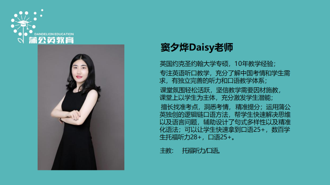 上海蒲公英教育新托福圣诞班课程培训—师资介绍