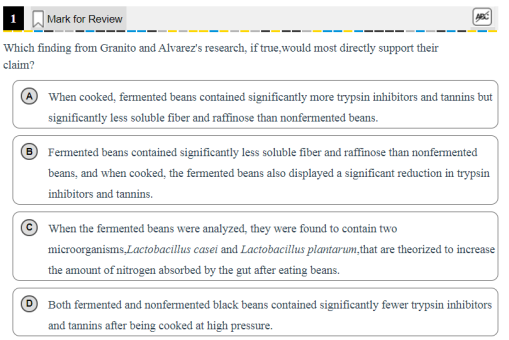 其实大部分逻辑题,尤其是自然科学,文章都不难,只要文章理顺了逻辑,很容易找到答案。一定要先读文章,按照郭老师的方法做预判,然后去匹配选项。做SAT逻辑题的时候千万不要先看选项,有时候四个选项都有对比,和原文的对比对象和对比点又非常相似,就很容易把你搞晕,或者要浪费很多时间也不一定能作对。