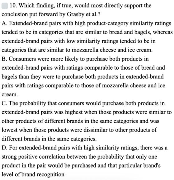 C 引入了不同品牌的对比,属于偷换对比对象。这里有两个对比:不同品牌 VS 同品牌,类似VS不类似,可以组合成4个对比对象,注意要和原文匹配。错。