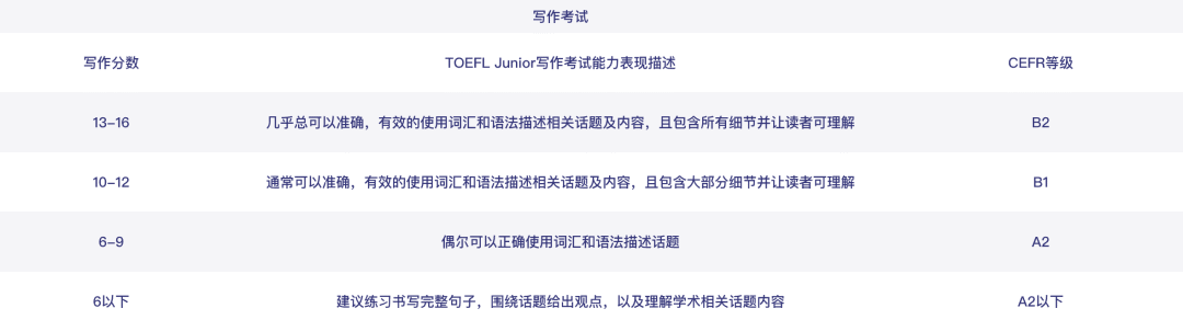 如果大家对写作*报告还有疑问,不妨查看小托福写作考试分数描述与等级对照表,结合分数报告示例与解析,对照小托福考试评分标准逐一梳理,就能快速找到写作提升的突破口啦!