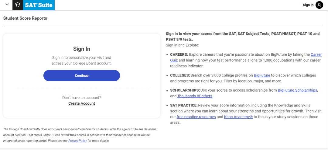 (https://studentscores.collegeboard.org/home),输入用户名和密码,即可看到SAT*报告。