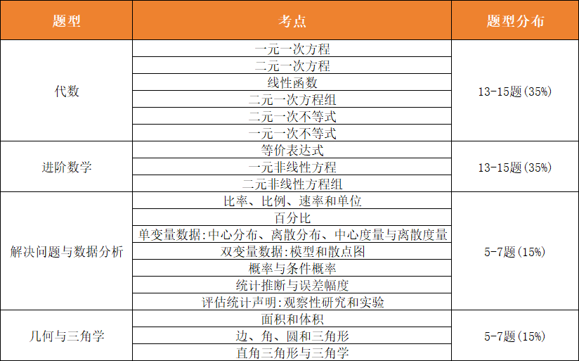 数学环节深入检验学生对数学概念及其运用技能的掌握程度,其考试范围包括代数、高等数学、数据分析、几何以及三角函数等多个核心领域。