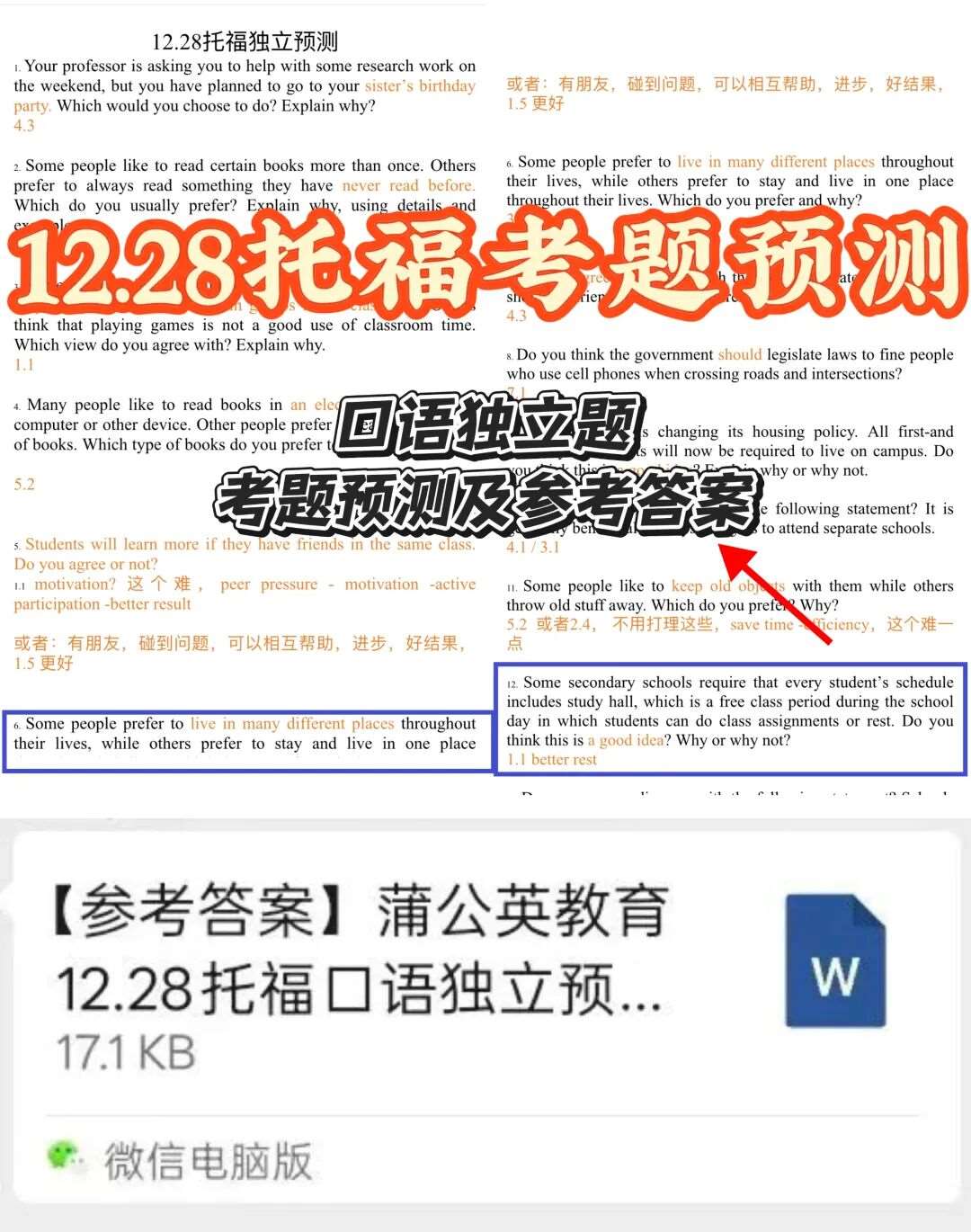今年最后一场托福考前急救!12月28日托福考前独立口语小范围预测题汇总!【12月托福考试预测机经】