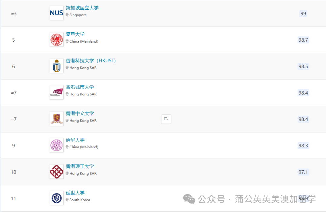 1. 中国香港:11 所院校全员上榜,9 所排名暴涨本次排名中港校集体发力亮眼出圈:11 所院校全部跻身榜单,9 所实现跨越式攀升,5 所强势冲进亚洲 ,6 所成功跻身亚洲 。从港大这类院校,到浸会大学、教育大学等特色院校,各层次港校均有亮眼表现,叠加香港 “Study in Hong Kong” 官方品牌加持,27fall 香港院校申请热度必将再创新高!