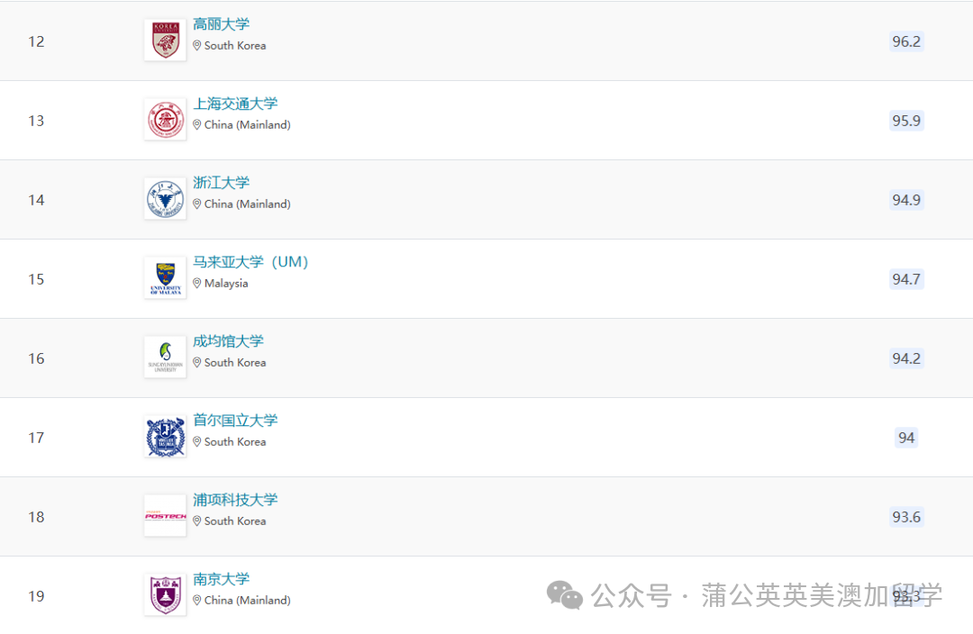 3. 新加坡:精英院校稳居,商科实力强势崛起新加坡院校表现稳定,新加坡国立大学、南洋理工大学稳居亚洲第 3;新加坡管理大学排名跃升 18 位,院校商科、社科优势尤为突出。新加坡院校适配追求 “精英教育 + 高就业*” 的申请者,不过当地院校数量有限,非常适合作为多国联申的核心备选选项。