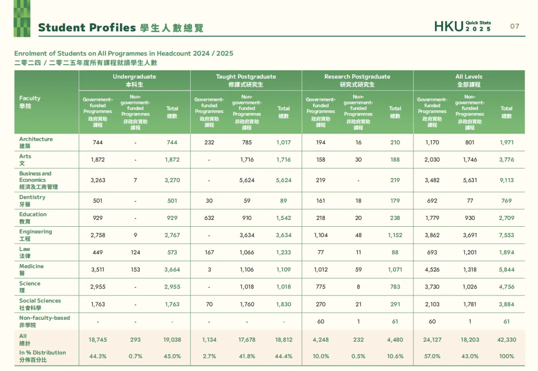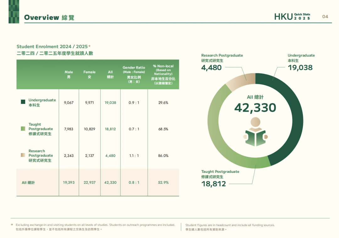 其中,本科新生人数为4860人,研究生人数为14145人。在2024/25学年入学的新生中,非本地生占比更是高达33.9%,创下近年新高。