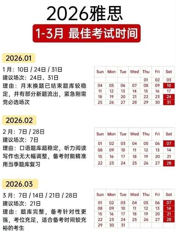 2026雅思1-3月*佳考试时间!