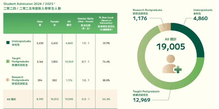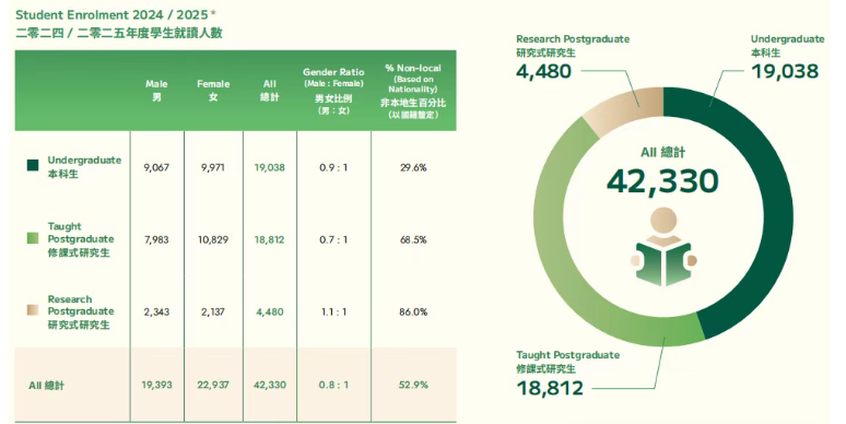2024/25学年,港大在校学生总数达到42,330人,较去年新增3,164人,其中本科生19,038人、研究生23,292人。更值得关注的是,全校非本地生占比已达52.9%,“全球课堂”属性愈发鲜明——这也意味着,2026年雅思考试备考的竞争力只会更强,语言*得提前稳住!
