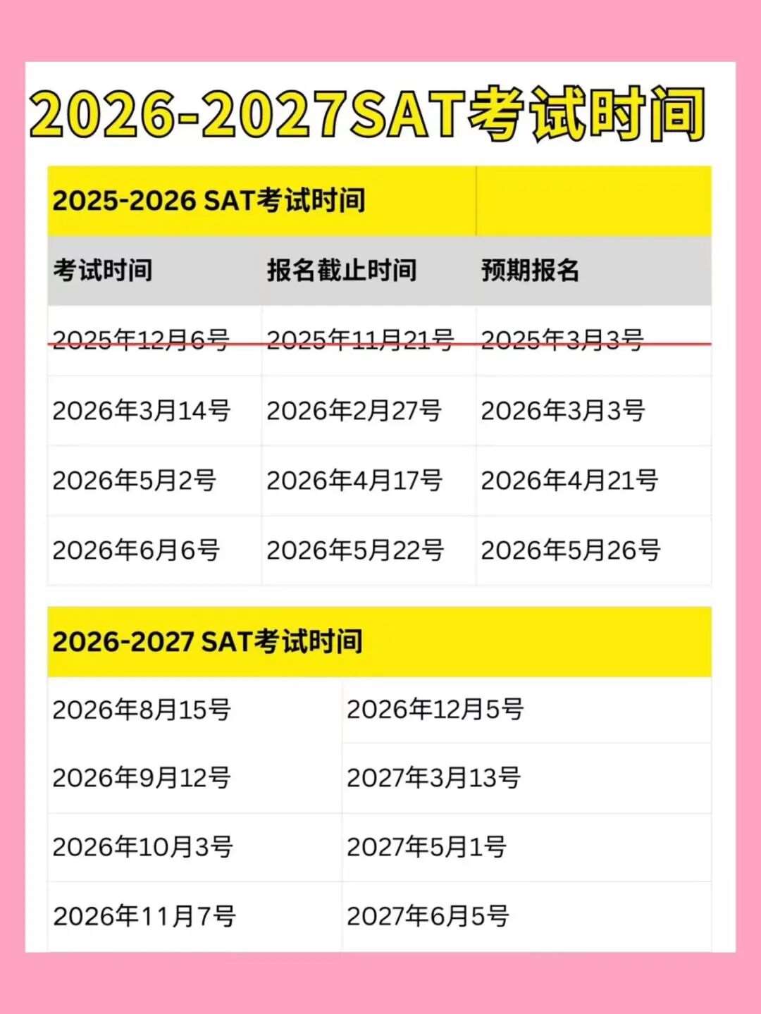 2026上半年SAT考试时间