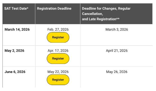 2026年上半年SAT考试时间