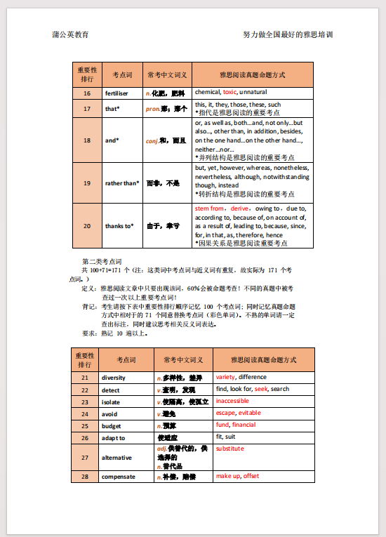 这份词汇清单不仅按题材类别清晰划分,还根据考察频次做了重要性排序,方便大家精准聚焦核心,高效记忆。只要熟练掌握这些考点词,轻松筑牢阅读基础,雅思阅读7.5分以上的目标将不再遥远,触手可及!
