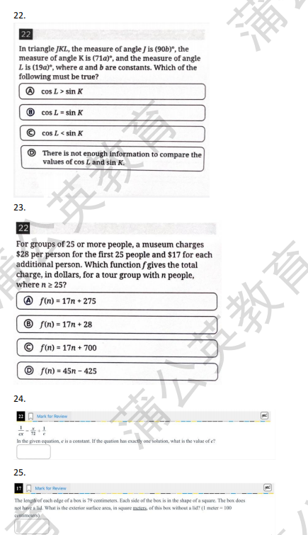 【免费下载】SAT数学真题难题合集pdf汇总(完整电子版高清)