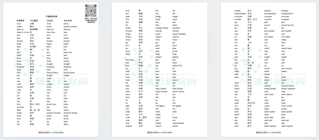 👉关注公众号+V发送【英语不规则动词表】直接领!
