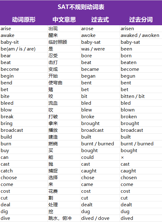 SAT考试高频考点词汇!英语不规则动词表:可下载打印