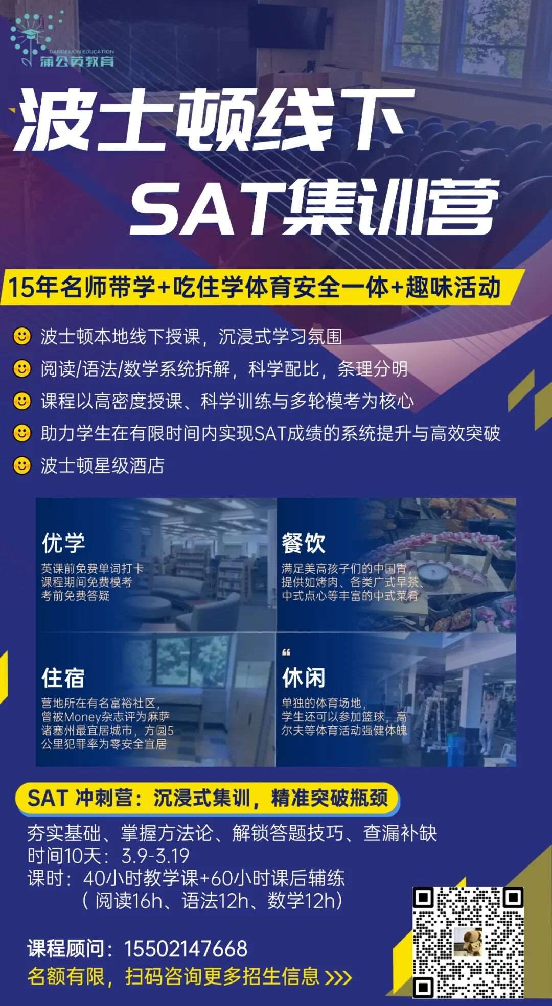 2026春季SAT备考|蒲公英波士顿SAT线下集训课程:10天冲刺1500+!吃住学体育安全一体强势上线!