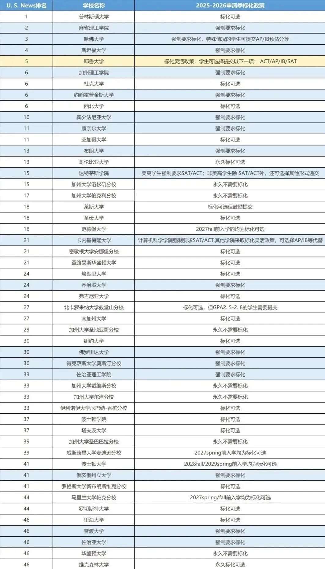 学校明确要求所有申请者必须提交SAT或ACT*