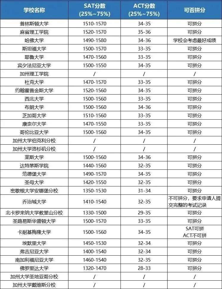美本申请的SAT分数要求因学校而异,以下是不同梯队院校的大致分数范围供参考: