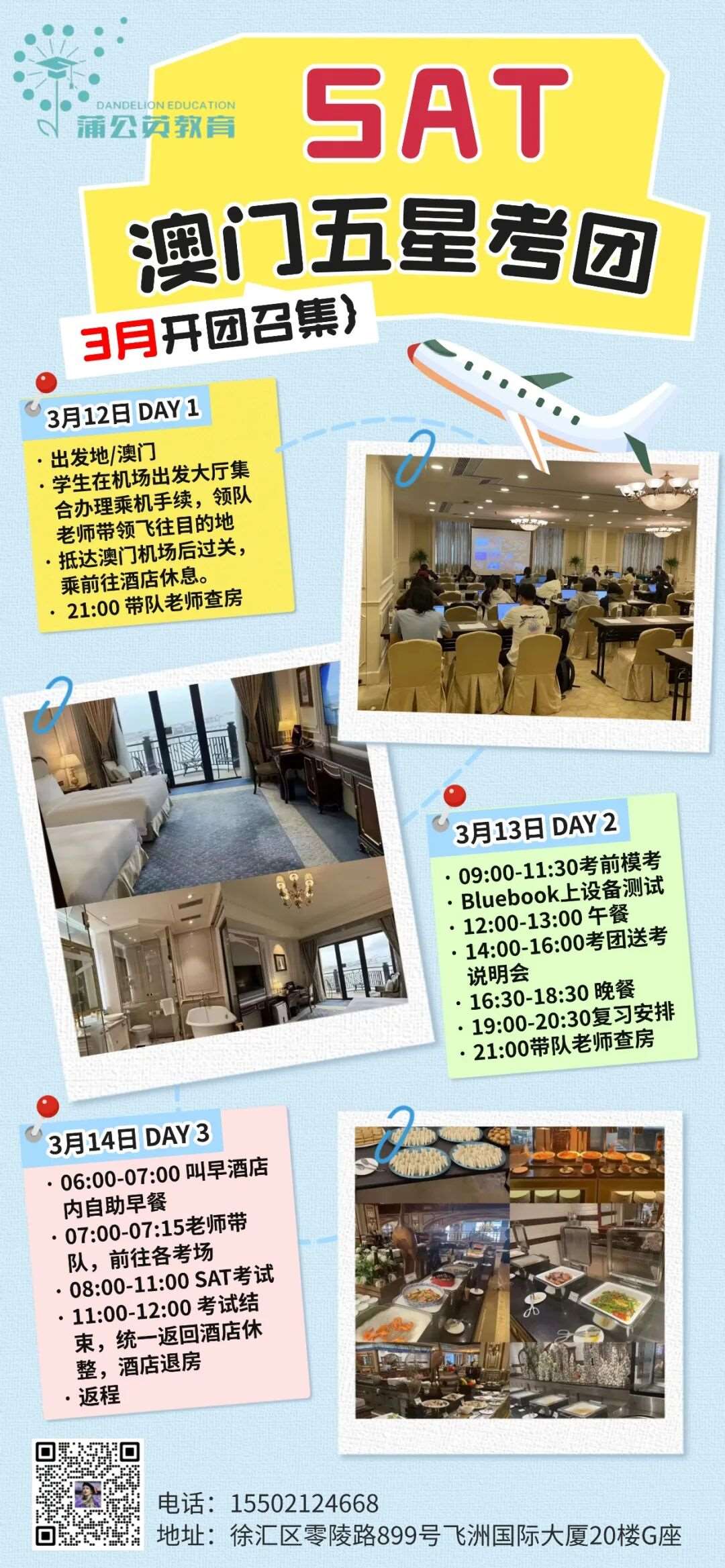 SAT澳门考场推荐 | 澳门SAT考场*全攻略!!蒲公英3月SAT澳门考团,郭博士全程带队!