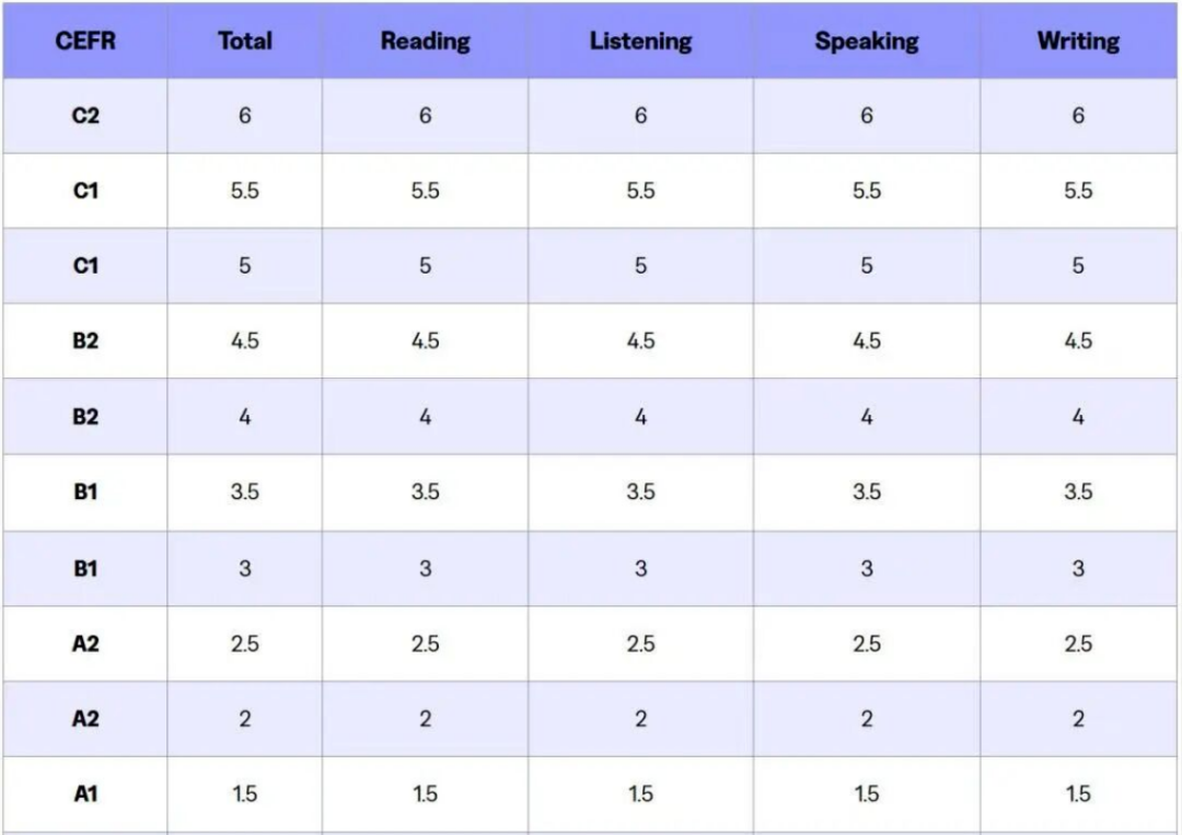 新托福与CEFR等级对照表: