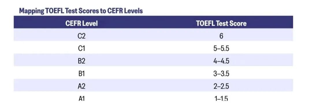 新托福的1-6分制(每0.5分一档)直接对接全球通用的CEFR欧洲语言共同参考框架。这意味着你的分数不再只是一个数字,而是能清晰反映出你对应的英语水平等级(如B2、C1),方便你和目标院校快速判断匹配度。