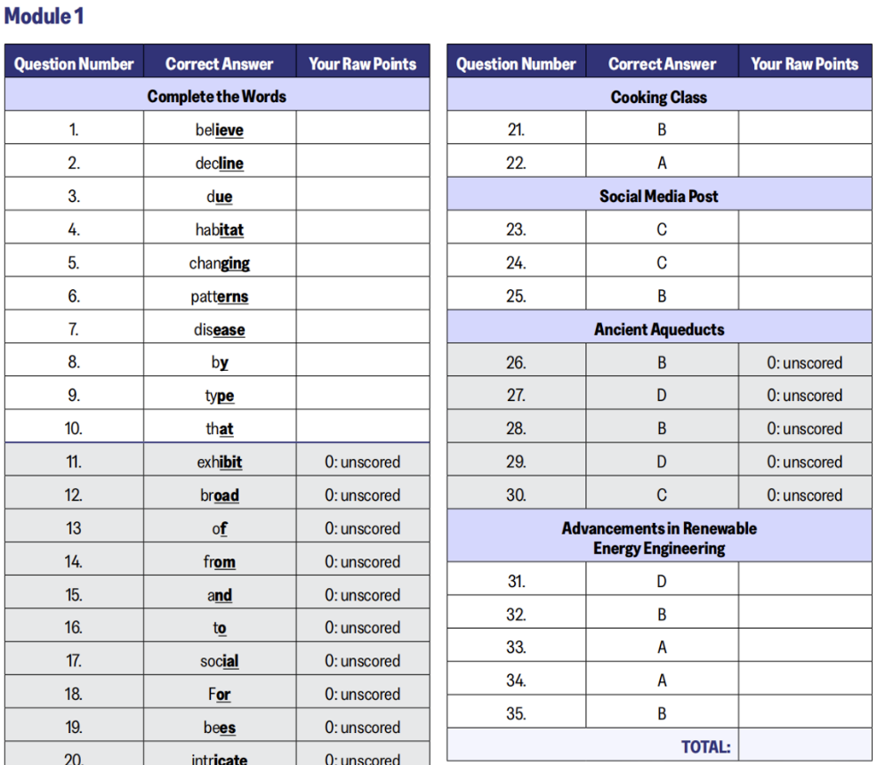2026版新托福OG全解析,阅读和听力的raw score转换表。这个在以往官方的所有套题中都未曾体现过。
