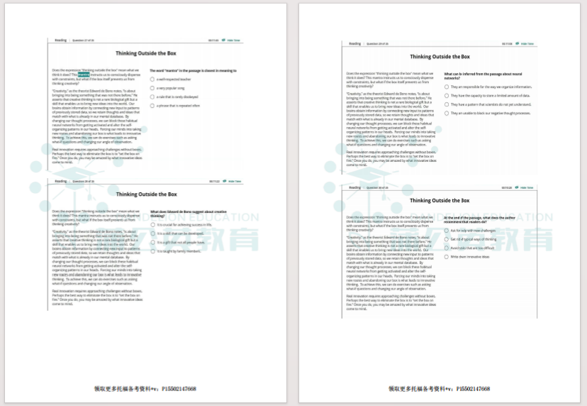 新托福备考真题是ETS官方考查要求的“具象化体现”,无论是阅读的话题选材、长难句考查维度,听力的场景类型、考点设置规律,还是口语的任务指令、写作的论证要求,均严格贴合2026年考试的核心考查逻辑。