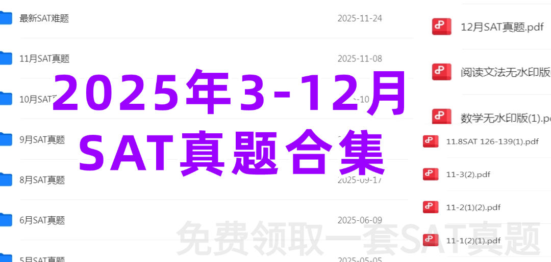 今天直接送上重磅备考福利 ——2026年SAT机考真题大全已全部整理完毕!涵盖机考高频真题、密卷(多数机构未收录,实考命中*更高),所有资料均配套高清完整版真题答案,解析详实、排版清晰,SAT真题答案pdf下载可直接打印刷题,省去整理麻烦~