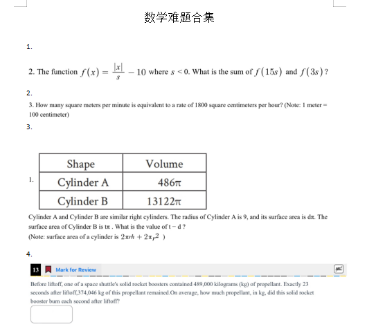 《SAT备考数学真题难题合集》严格筛选标准: