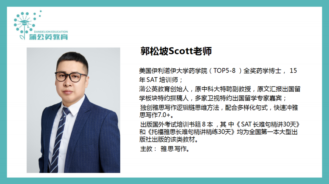 蒲公英教育雅思项目组目前合计共有5位老师: