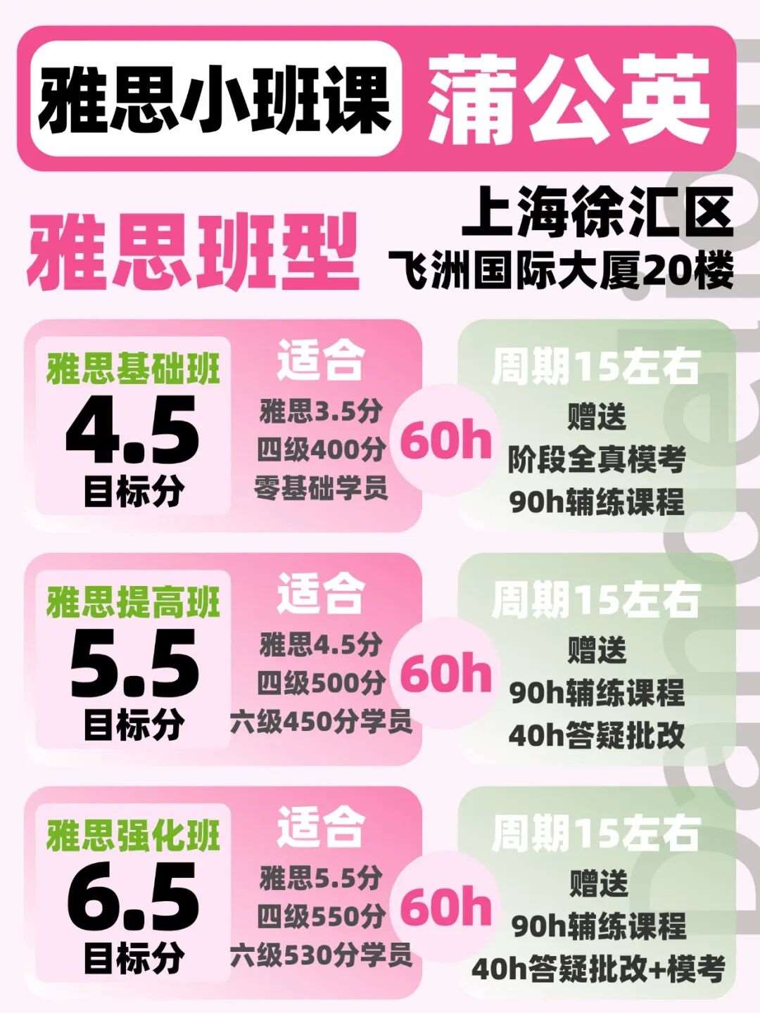 蒲公英教育:上海雅思春季课程火热招生中!准备3-4月份的考生速上“车”!雅思小班课程/雅思1v1,带你7.0!