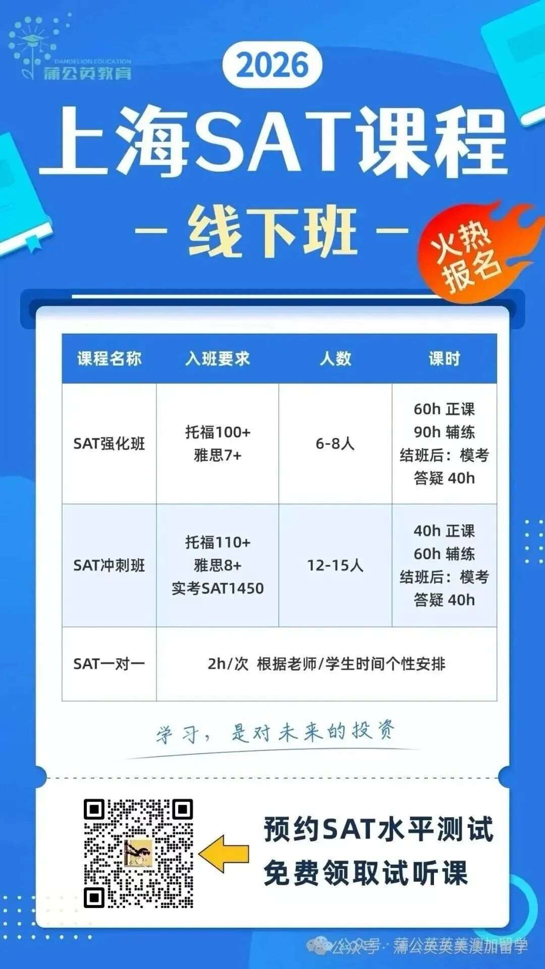 需要蒲公英郭松坡博士亲授的SAT考前密卷点题班,请扫描下方二维码,添加小助手,预约课程!