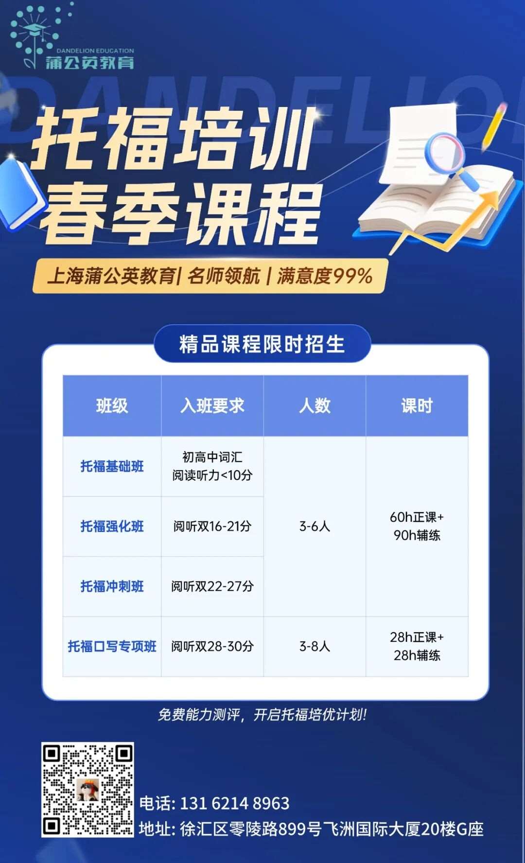 春启备考,夏末出分,上海蒲公英托福春季班,期待与你一起,稳稳上岸!