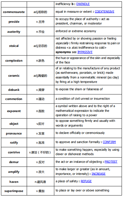 另外,还配上韦氏词典(Webster)里的意思:ETS出题,尤其是词汇题(填空题)的英文释义,基本上来自于韦氏词典。韦氏词典里的同义词经常是词汇题里考的原文与对应选项。